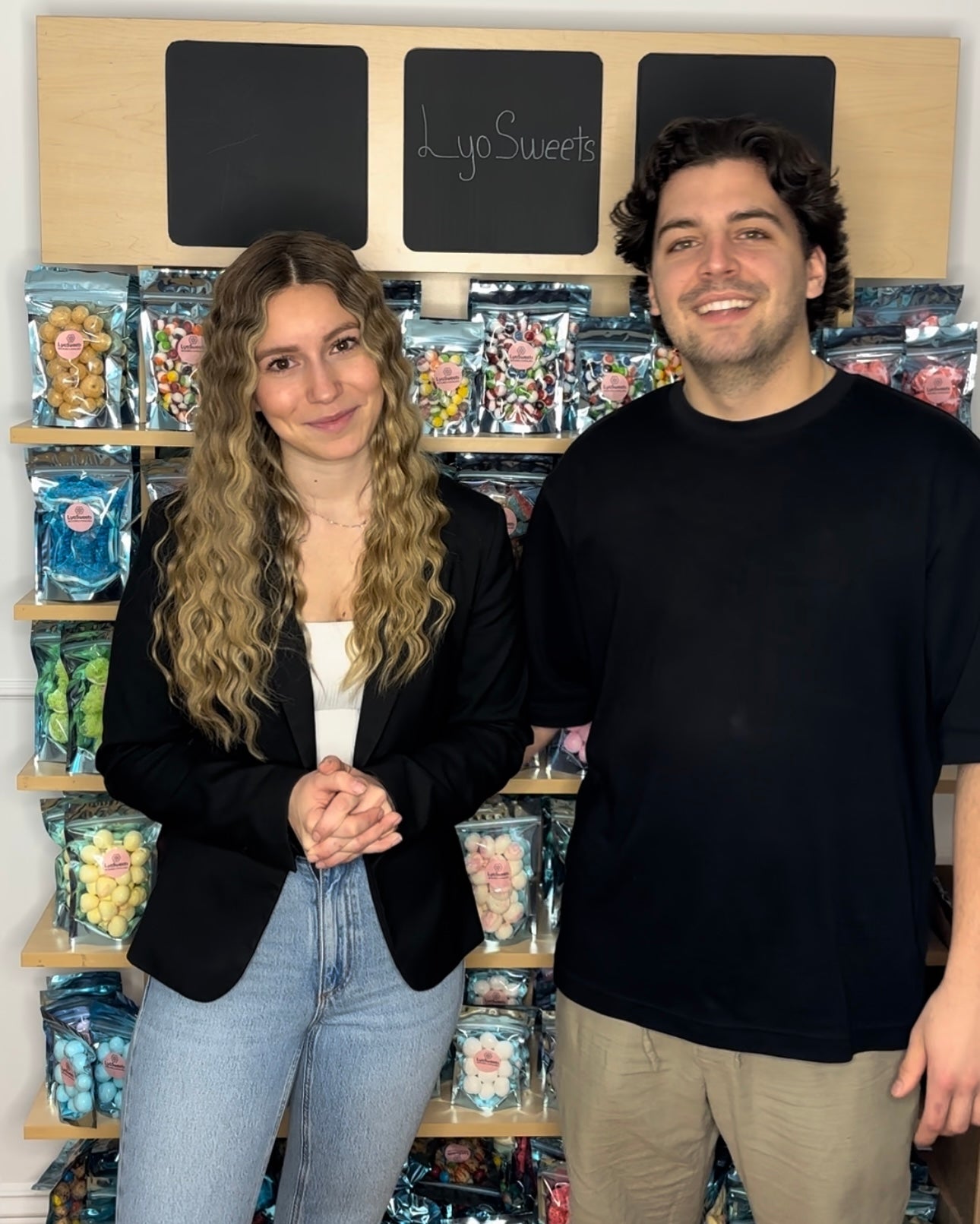 Elle, c'est Jasmine, et lui, c'est Louis ! Nous partageons la même passion pour les bonbons, et nous souhaitons la partager avec vous à travers nos délicieuses bouchées lyophilisées.